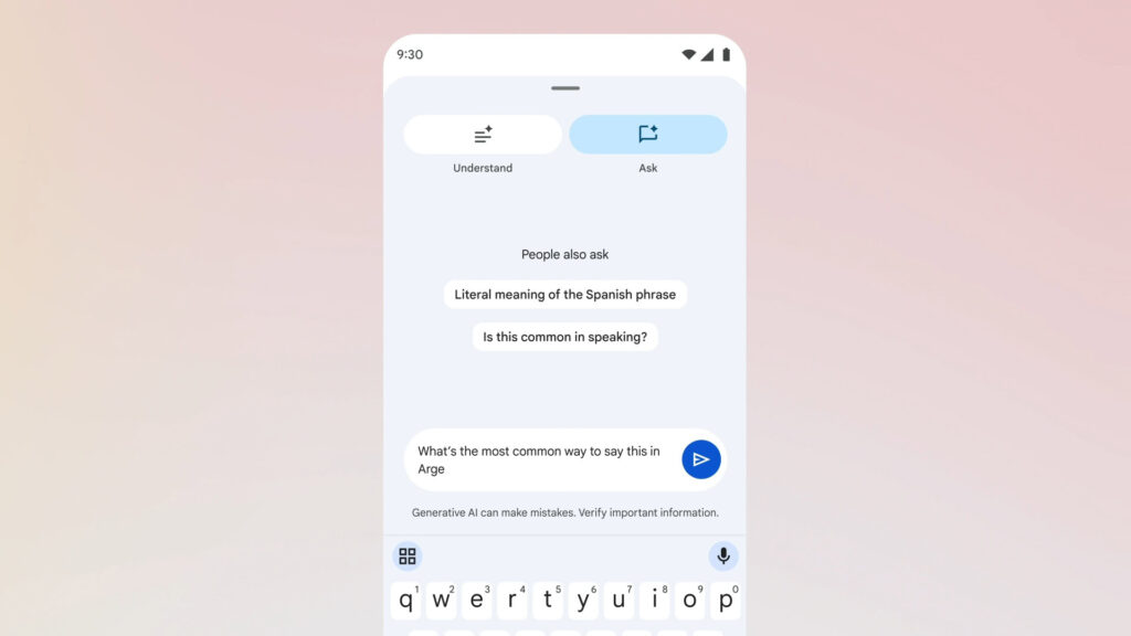 La segunda característica, Ask, va aún más lejos. Los usuarios ahora pueden hacer un seguimiento con preguntas específicas sobre una traducción. Por ejemplo, puedes preguntarle a Géminis cómo podría cambiar una determinada expresión en un país o dialecto específico. Este nivel de interacción tiene como objetivo reducir la ambigüedad y ayuda a que las personas se parezcan más a ellas mismas (y menos a una computadora) independientemente de la barrera del idioma.